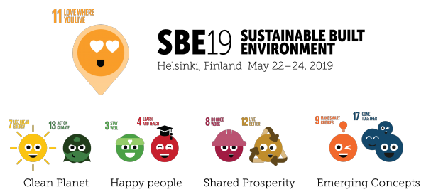 SBE19 Helsinki Visuals contain SDG Goodlife Goal Emojis.